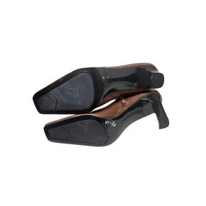 +++ There is peeling on the interior lining of the boot++ Vintage Y2K Bandolino 10 Brown Leather Square Toe Buckle Chunky Boot Minimalist