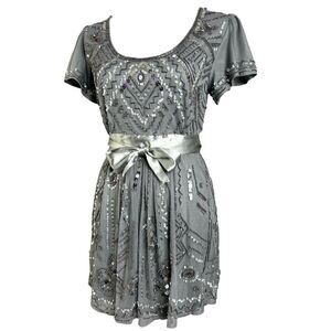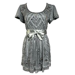 New without tags Vintage Y2K Beaded Sequin Fairy Top Gray Cap Sleeve Art Deco Blouse by Together