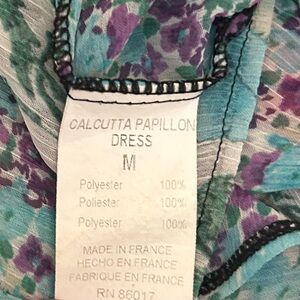 Vintage Y2K Bebe Dress Calcutta SHEER Blue Black Patchwork Floral Fairy Kaftan Cover Up