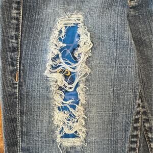 Vintage Y2K Bebe Kayla Boot Cut Jeans Rhinestone Logo on Seat Size 28 Modified Blue gemstones