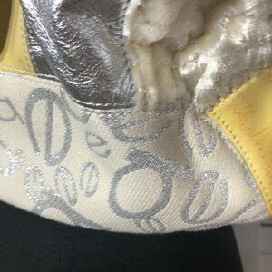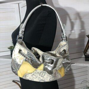 Vintage Y2K Bebe logo shoulder bag in a cream, silver, and yellow color combination. One size.