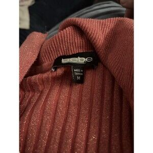 Vintage Y2K Bebe M Glitter stretch ribbed Henley blouse fitted sweater top