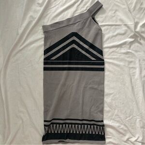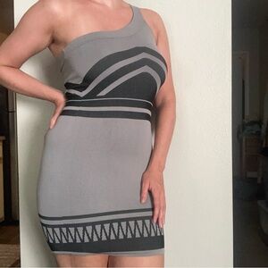 Vintage Y2K Bebe One Shoulder Stretchy Bodycon Dress Size M/L Gray Black
