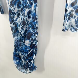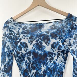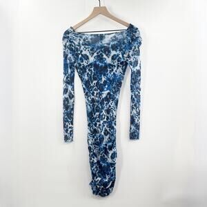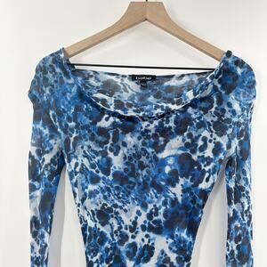 Vintage Y2K Bebe Sheer Mesh Long Sleeve Midi Dress in Blue Print Size Small