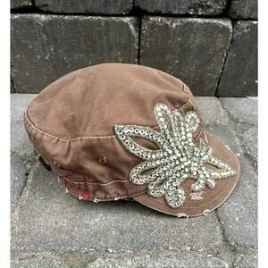 Vintage Y2K Bejeweled Fleur de lis miliary cadet hat