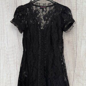 Betsey Johnson Black Lace Overlay Dress Slip Style Puff Sleeve Ruffle Trim Size 6