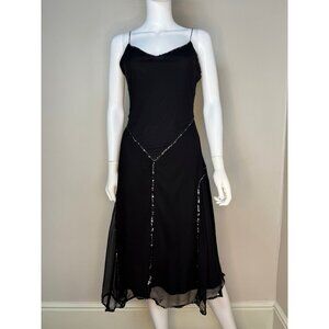 Vintage Y2K Betsey Johnson Black Sequin Slip Dress with Zig Zag Hem, XS/Small