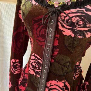 Vintage Y2K Betsey Johnson Velvet Floral Bustle Top