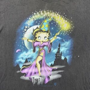 Vintage Y2K Betty Boop Wizard Black Faded T Shirt Gildan T Cotton Size XL 0580