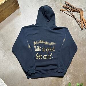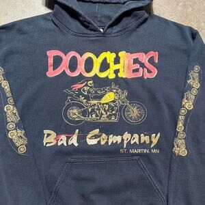 Vintage Y2K Biker Bar AOP Hoodie Faded Black Mens Medium Motorcycle Sweatshirt
