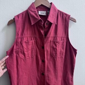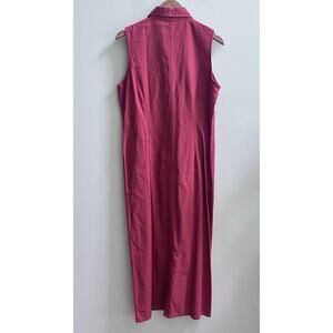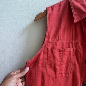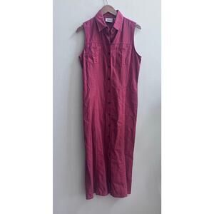 Vintage Y2K Bill Blass Red Orange Linen Blend Button Up Maxi Women's Dress M