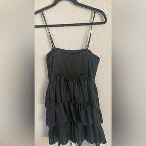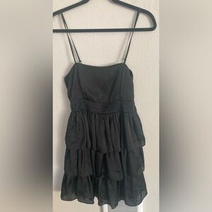 Super cute tiered little black dress with a beaded waistband. Silky soft satin fabric. Would be perfect for a school dance or date night. Excellent pre loved condition.