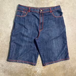 Vintage Y2K Blac Label Affliction Heavily Embroidered Jean Shorts Navy Blue Denim Baggy Grunge Skater Mulitcolored Jorts
