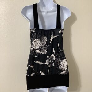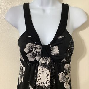 Vintage Y2K Black Beachy Summer Tropical Boho Floral Vacation Strappy Top L