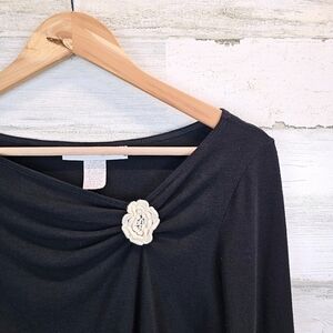 Vintage Y2K Black Knit Top MP Flared Sleeves Rosette Flower Balletcore Soft Girl