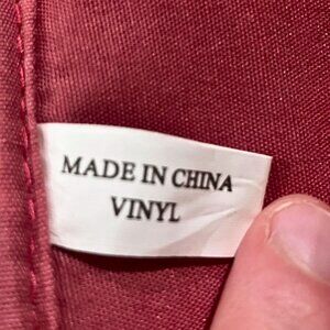 Rectangular black vinyl wristlet with pink vinyl trim, wrist strap attached to the top zipper, and rounded corners. J monogram is cut out revealing the pink vinyl underneath. Two unsecured inner pockets & lipstick/pen holder.