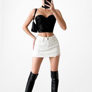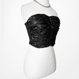 Vintage Y2K Black Sequin Sweetheart Neckline Strapless Tube Crop Top Size S