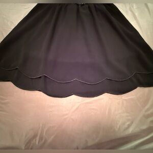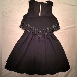 Vintage Y2K Black Sleeveless Scalloped Edge Tiered Mini Dress w/ Beading Small