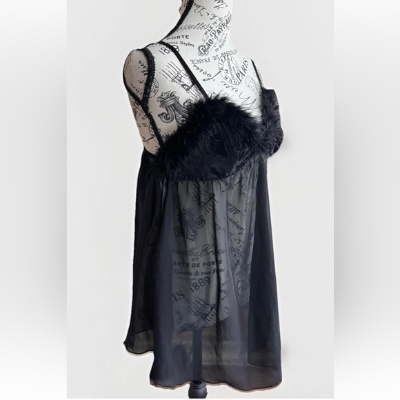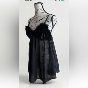 Vintage Y2K Black Whimsigoth Whimsey Goth Faux Fur Lingerie Slip Top Large