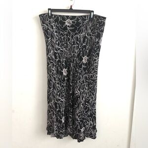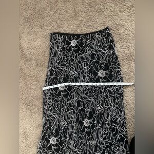 Vintage Y2K Black White Floral Midi/Maxi Skirt Bias Cut Lettuce Hem Grunge
