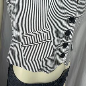 Y2K vest • pinstripe waistcoat • tailored vest top • black and white striped vest • vintage 2000s • retro chic layering piece • corset-style vest