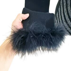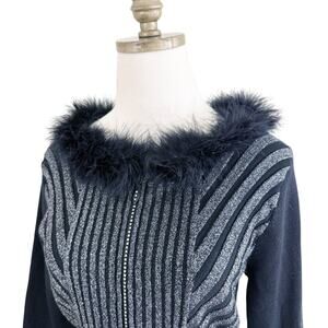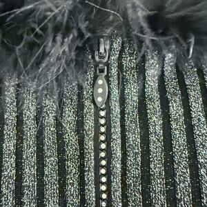 Vintage Y2K Black/Metallic Silver Zip Up Cardigan with Feather Accent Sz Medium