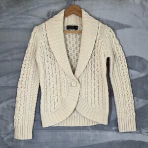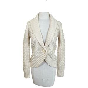 Beautifully made cable knit sweater from Blarney Woolen Mills of Ireland. Shawl collar, one button closure. Super warm and comfy. Excellent condition.