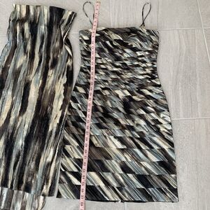 Vintage Y2K Blue Beige Gray Brown Cocktail Dress Size 4 With Scarf/Shawl