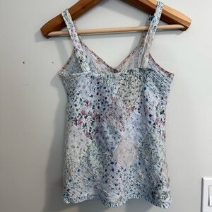 Vintage Y2K Blue Sky Embroidered Quilted Patchwork Floral Halter Top Tank Top