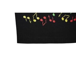 Turn up the vibe with this vintage Y2K Bob Marley tee featuring a bold rasta-colored graphic of Bob with his guitar, backed by reggae stripes and dancing music notes. A true throwback to 2000s style and roots culture.