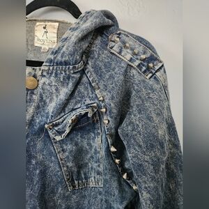 Good vintage condition, spike accents, button front, denim washed hoodie. Y2K vibes!