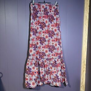 This vintage Y2K boho maxi skirt is a versatile dream! Covered in a bold floral and psychedelic print, it can be worn as a flowy skirt or styled as a strapless dress. Lightweight and vibrant with a tiered silhouette, it’s perfect for warm days, festivals, or beach vacations.