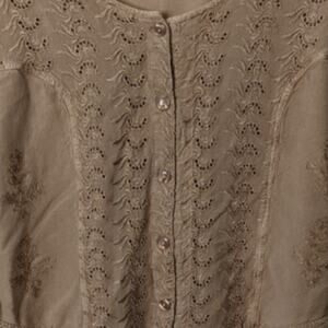 Vintage Y2K Peasant Blouse Tan Eyelet Tie Back Regency Sleeves Ren Fest