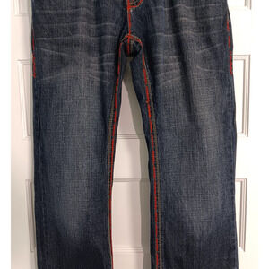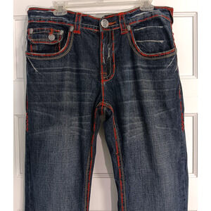 Vintage Y2K Bootcut Jeans 36 x 34 Skull Thick Stitch Embroidered Fading Whiskers