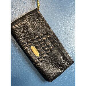 Vintage Y2K Brahmin Black Alden Croc Embossed Leather Wristlet