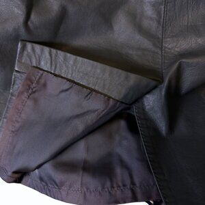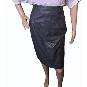 Vintage Nordstrom Brass Plum Size 3 Leather Skirt. Crafted with precision, this vintage leather pencil skirt offers a sleek silhouette and timeless appeal. Its neutral gray tone complements various wardrobe styles.