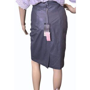 Vintage Y2K Brass Plum Gray Leather Pencil Skirt Jr Size 3 Midi Zipper Mob Wife