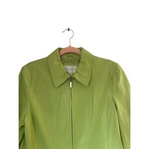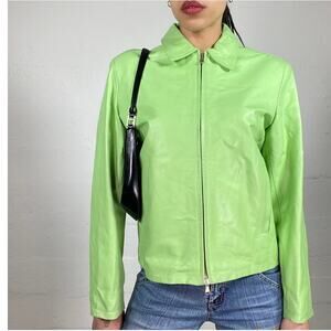 Vintage Y2K Brat Green Genuine Leather Full Zip Fitted Jacket Medium