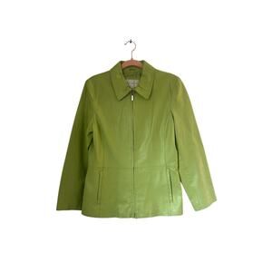 Vintage Y2K Brat Green Genuine Leather Full Zip Fitted Jacket Medium