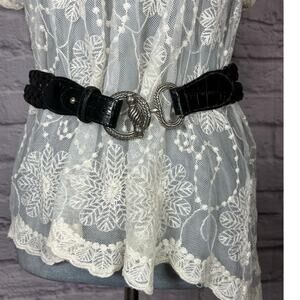 Vintage Y2K Brighton Style Braided Leather Belt with Unique Latching Buckle