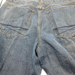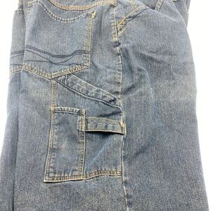 Vintage Y2K Brooklyn Express Medium Wash Carpenter Jean Shorts Jorts 40 Hip Hop