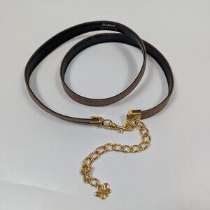 Vintage Brown Fabric Belt with Gold Chain Closure and Butterfly Detail