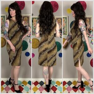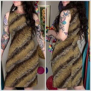 Vintage Y2K Brown and Gold Snakeskin Print Sleeveless Slinky Dress