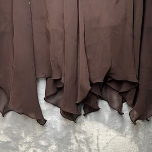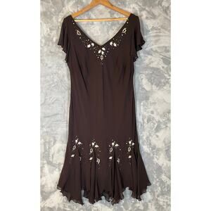 Vintage Y2K Brown chiffon Beaded Tissue Hem Midi Dress XL Party Formal Babydoll
