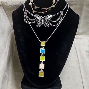 Vintage Y2K Butterfly Festoon Necklace Mosaic Tile 3 Piece Crystal Set