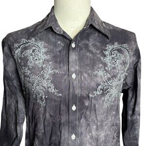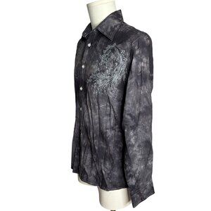 Vintage Y2K Button Up Long Sleeve Shirt S Gray Black Cotton Affliction Style