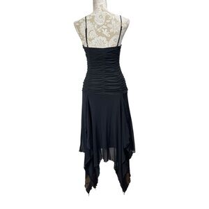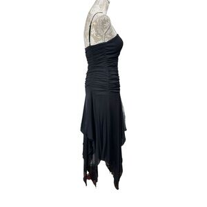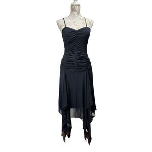 Vintage Y2K Caché Size 8 Black Ruched Handkerchief Hem Midi Dress Whimsigoth