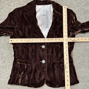 Vintage Y2K Cache Brown Velvet Rhinestone Buttons Glam Blazer, Made in USA