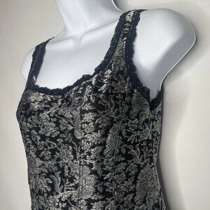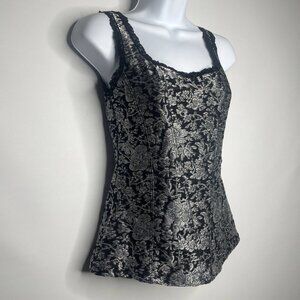 Vintage Y2K Cache Cami Camisole Tank Top Size S Black Silver Knit Floral Brocade
