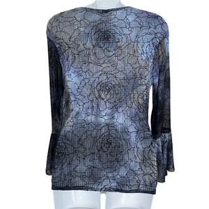 Vintage Y2K Cache Forest Fairy Whimsy Bell Sleeve Embroidered Deep V Top Size L